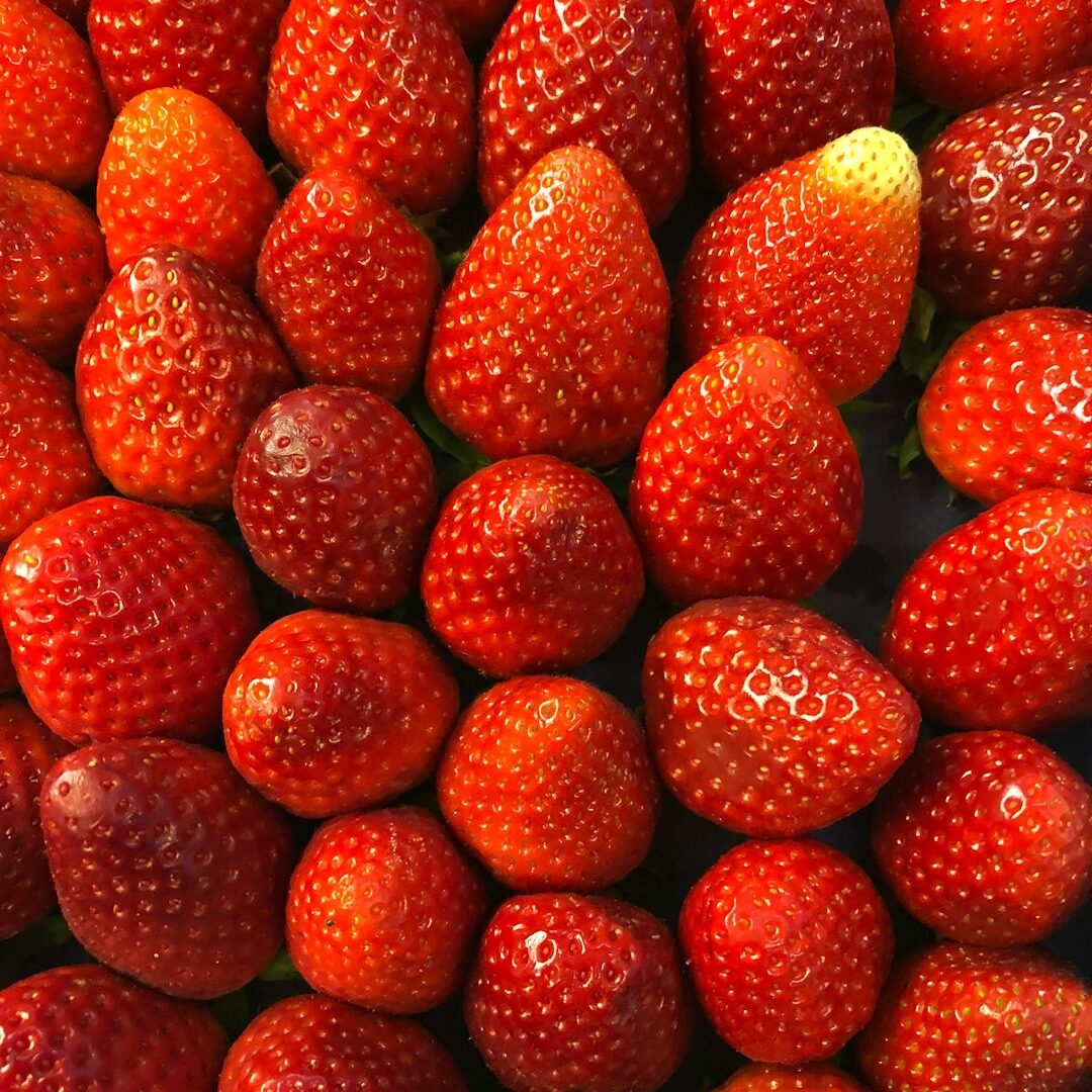 Jordgubbar, svarta vinbär, röda vinbär, krusbär, rabarber, amerikanska blåbär, blåbärstry, björnbär mm